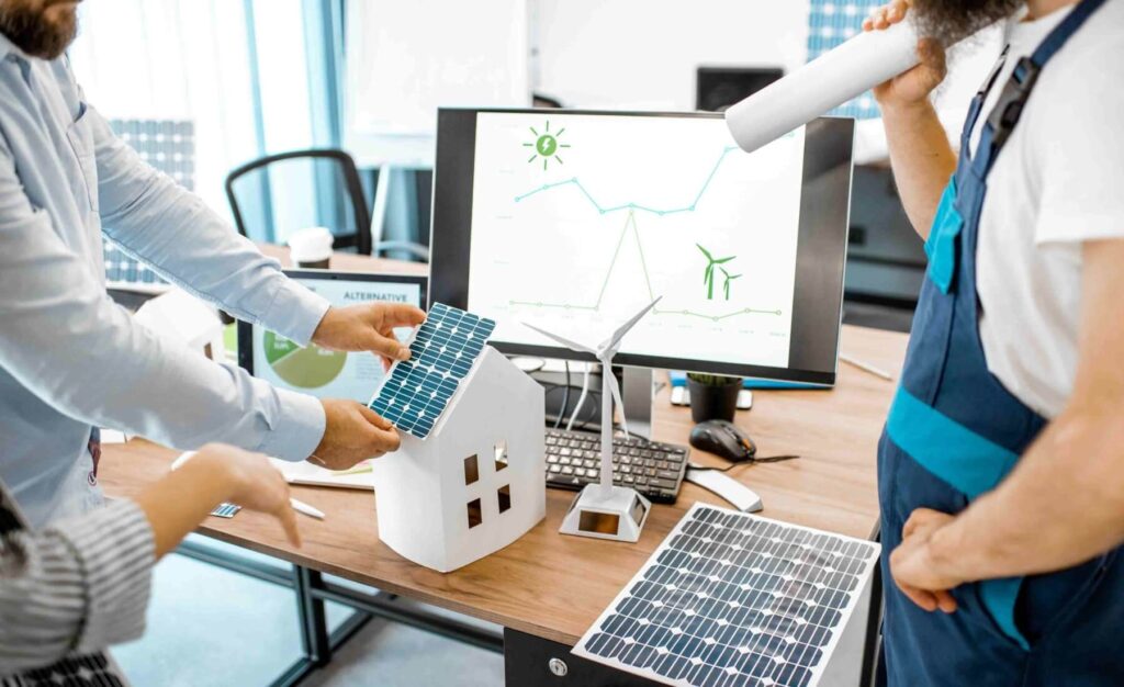 Installation of a solar power system for a large office building to reduce energy consumption.